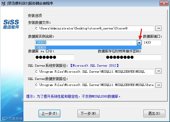 打开“便利店9管理服务”,在打开的初始化窗口中做如下配置(如图):
