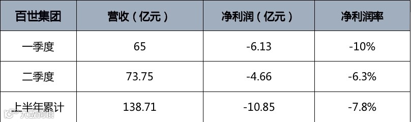 根据财报数据,百世集团二季度营收为73.75亿元,净亏损4.66亿,净利润率是-6.3%。相比一季度来说(一季度净利润率为-10%),亏损幅度有一定减少。百世集团上半年总营收为138.71亿元,净亏损10.85亿元,净利润率为-7.8%。