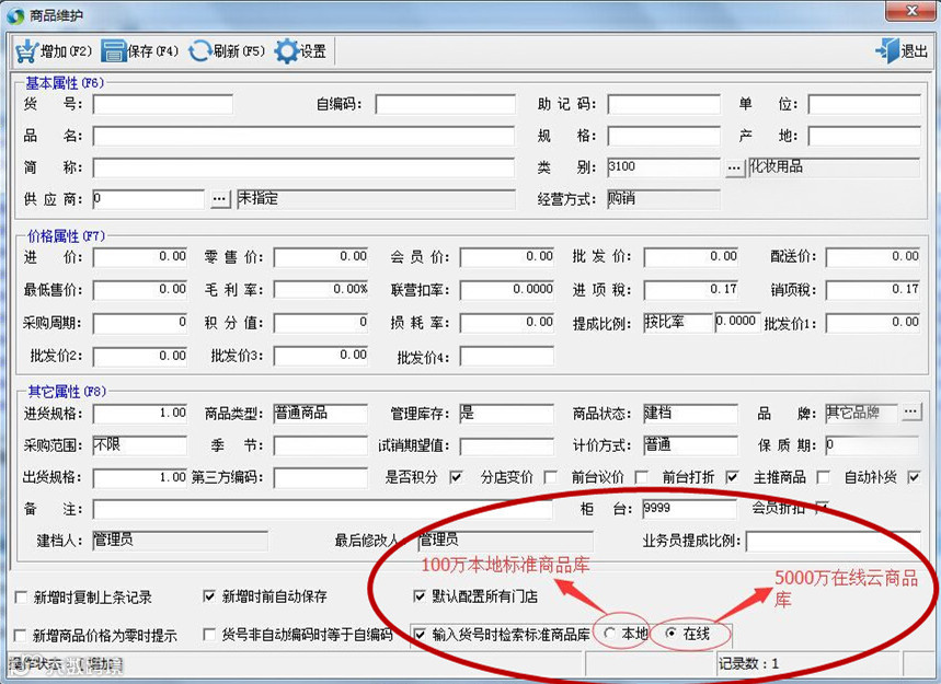 新增商品时可选择本地或在线商品库,录入商品信息效率倍增,零出错率,零误差率, 省时省心又省力!