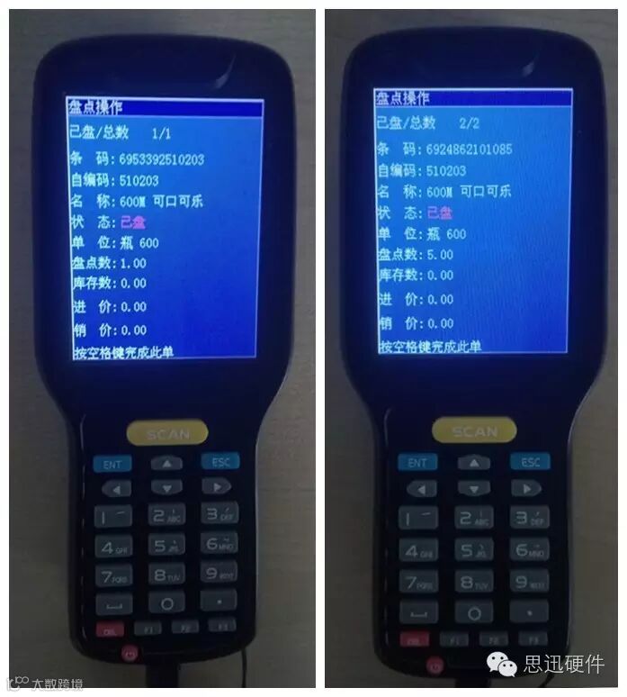 当用思迅3700+盘点机做采购、出库、盘点时,扫描到的瓶身条码可统计到该条码对应产地的数量,上图: