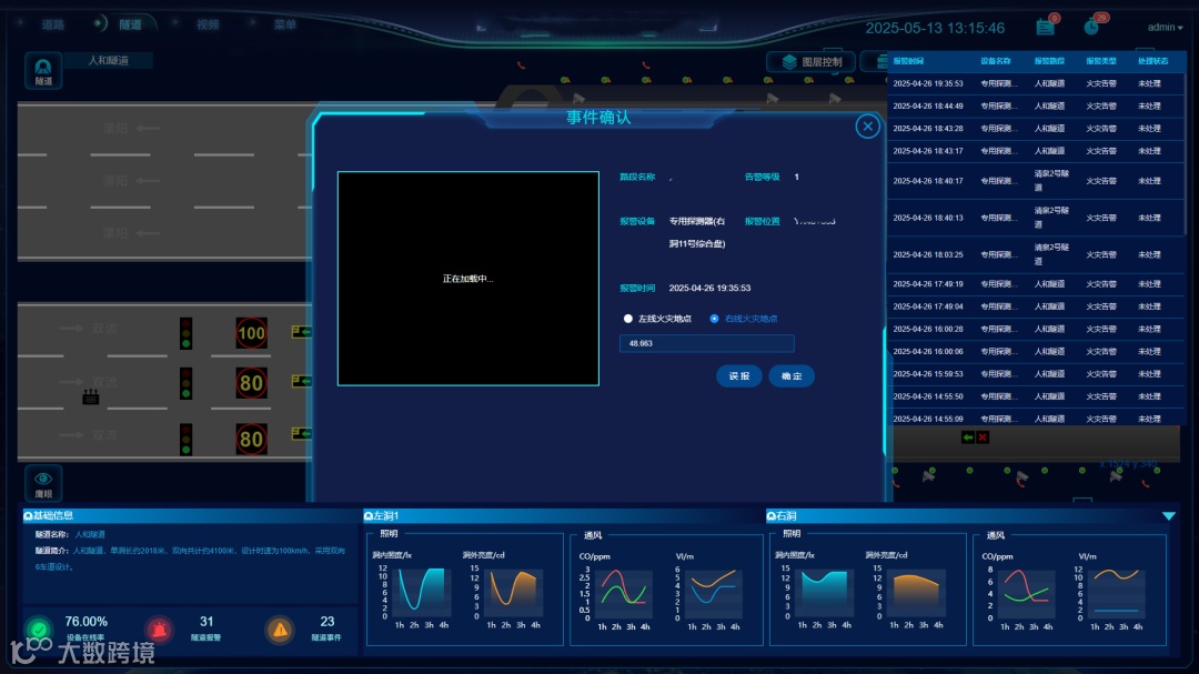为解决隧道运营管理中存在的:检测数据不统一、智能预警反应慢、事件检测精度低、运营能耗高、协同处置能力差、事故联动救援难度大等问题,易构软件研发高速公路隧道综合管控平台。