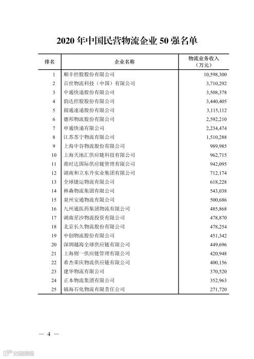导读:11月27日,中国物流与采购联合会发布《2020年度中国综合、民营物流50强通报》,该通报是根据国家发展改革
