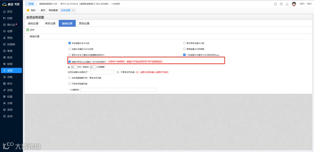 新增储值卡充值统一到账总部,便于连锁品牌的规范管理。
