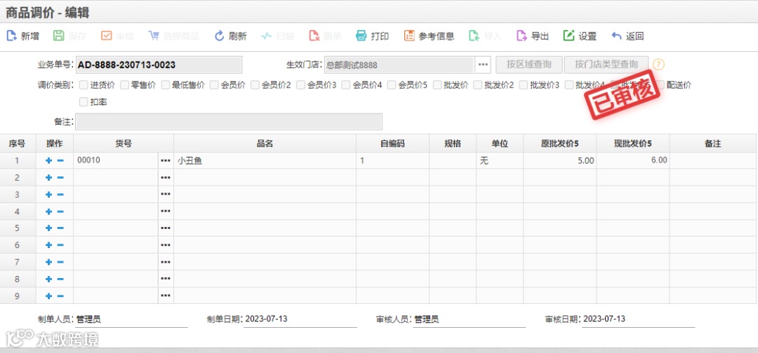 支持收银前台、后台、手机端快捷实时调价,多端口可操作方便了不同经营场景的操作,零食清货阶段能体现此功能的高效率。