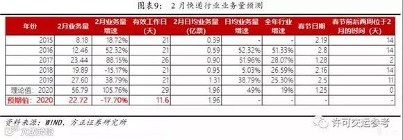 ②综合考虑各项影响因素,预计2月快递业务量增速-18%,全年依然保持乐观,预计全年770亿票,增速21%。