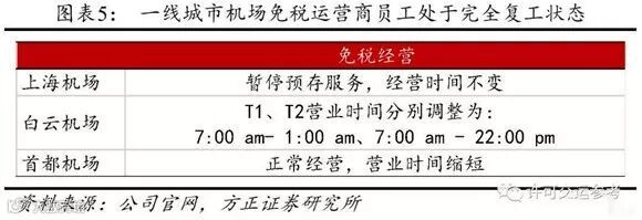 其次,机场有税、免税等非航空性业务正常经营,仅对营业时间进行微调,因此各运营商员工同处于完全复工状态。