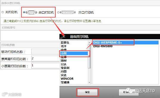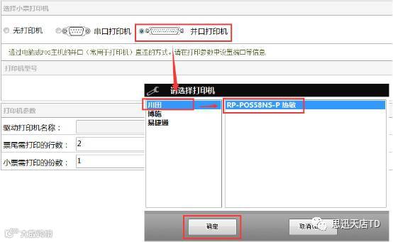 选择“并口打印机”则会弹出软件支持所有串口打印机类型,选择类型后再相应选择打印机的型号,单击“确定”即可完成打印机设置。