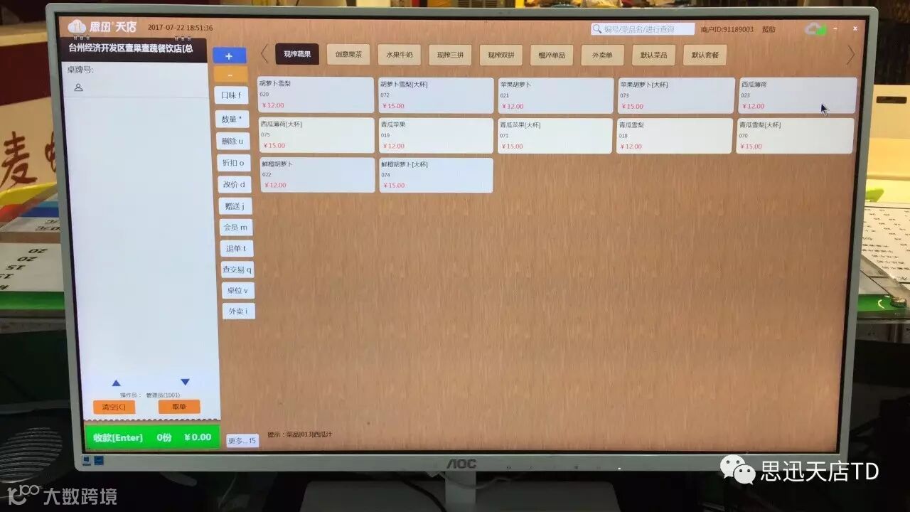 壹果壹蔬是一家只做鲜榨果汁的饮品店,在选择收银软件上对软件界面、促销、会员等功能有比较强烈的需求,天店餐饮收银软件,在功能上支持多种促销方式,会员支持储值、积分、折扣等功能,加上在原料耗损、库存管理上大大方便了店铺管理,壹果壹蔬选择了思迅天店餐饮收银软件。