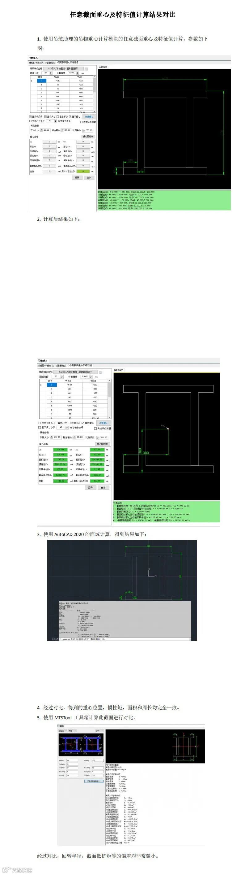 3.4 计算结果与AutoCAD 2020 面域和MtsTool工具箱结果计算对比,偏差微小,计算结果准确可靠。 -