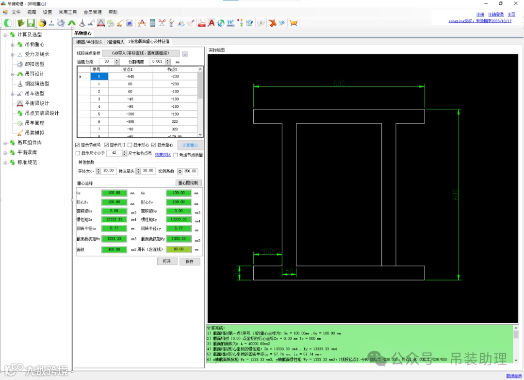 2.2 能通过节点坐标,实时输入截面和节点的重量,计算截面的特征值和重心。 -
