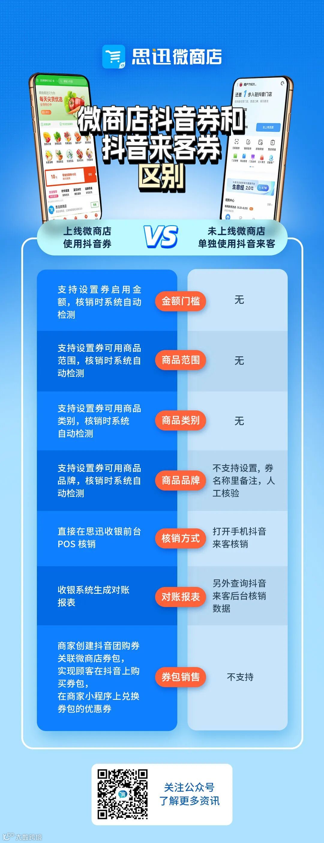 商家上线微商店使用抖音券与未上线微商店单独使用抖音来客对比优势如下。