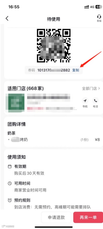 step1: 点击抖音券码“复制” →