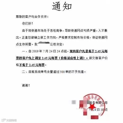 昨日,有消息称义乌几家主流快递公司达成共识,为避免恶性竞争联合上调价格,各公司最低票价不得低于2.2元。