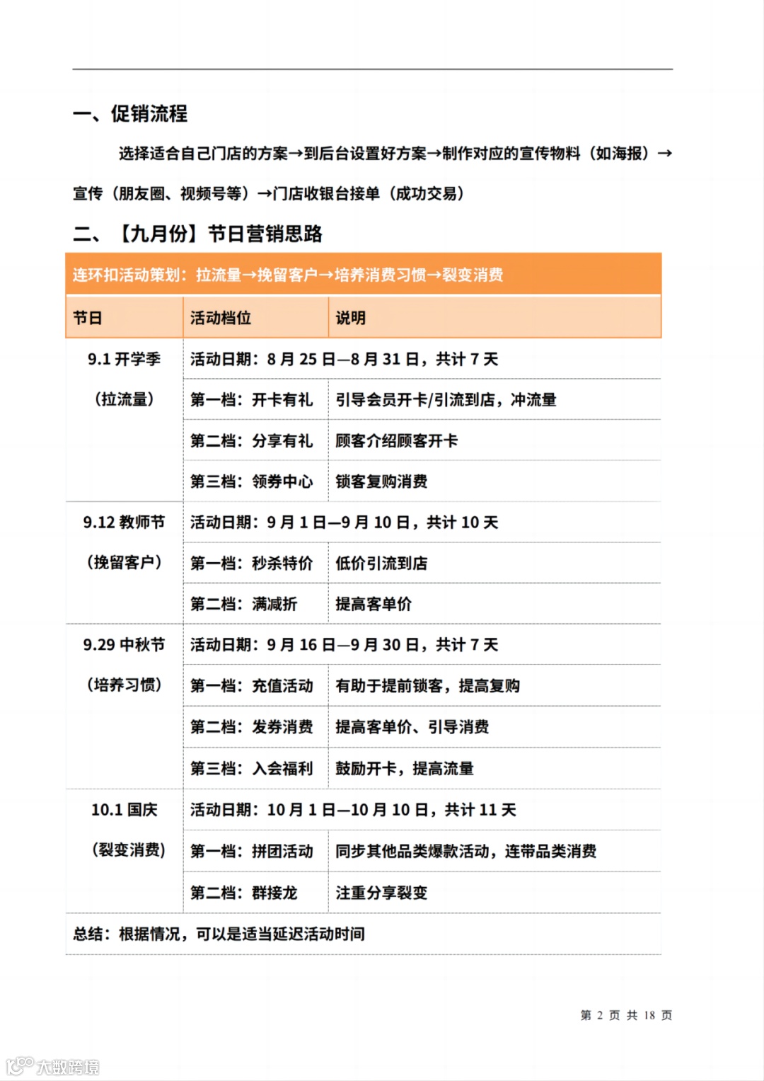 一、九月营销方案