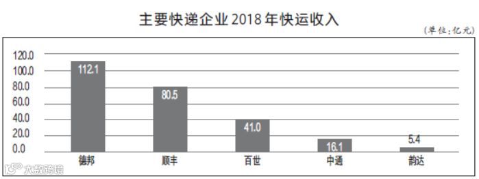2018年,德邦快运业务收入超过百亿元,是上市快递企业中唯一一家快运收入过百亿元的公司。不过,德邦过往的“快运+”,正在加速转化为“快递+”。2018年7月,德邦物流正式更名为德邦快递,大件快递也成为其全面发力的新目标。2018年度,德邦快递业务首次突破100 亿元大关,年营收达到114 亿元,但快运业务收入却出现了缩水,为112.06亿元,同比下降13.76%。