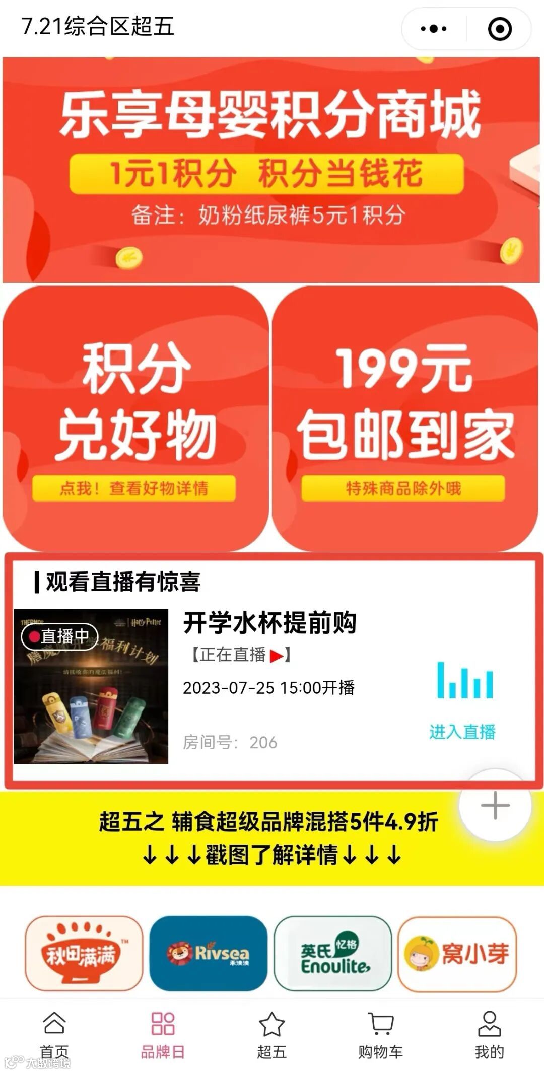 超级品牌5件4.9折,品牌可混搭选购,满4件减13元、满2件7.5折……通过增加商品购买数量提高客单价,增加商品销量,刺激顾客买买买意愿。