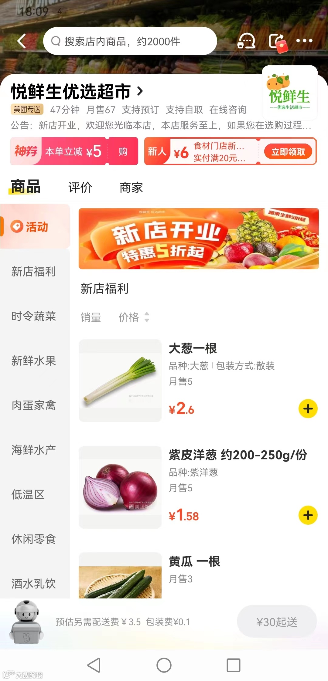 商家介绍:提供新鲜的蔬菜、水果、肉类、海鲜等产品,果蔬肉鲜一站式购齐!物美价廉、及时送达服务。