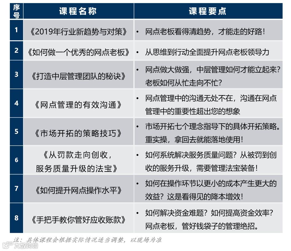 【培训名额】仅限150人,先报先得!(网点规模30人以下,建议1人报名;网点规模在30-100人,建议2人报名;网点规模100人以上,建议3人以上报名)