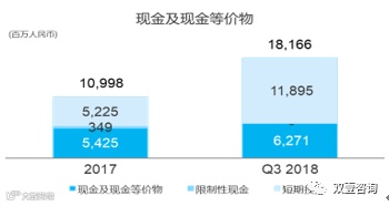 截至2018年9月30日,中通持有的现金及现金等价物、限制性现金以及短期投资总额为181.66亿元。
