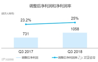 第三季度调整后净利润为10.58亿元,同比去年同期7.31亿元,增长44.9%。