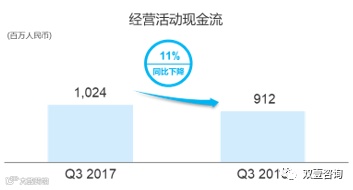 第三季度来自经营活动的净现金流为9.12亿元,对比去年同期10.24亿元略有下降,主要是由于支持网点经营扩张的金融保理业务应收款增加了1.25亿元。