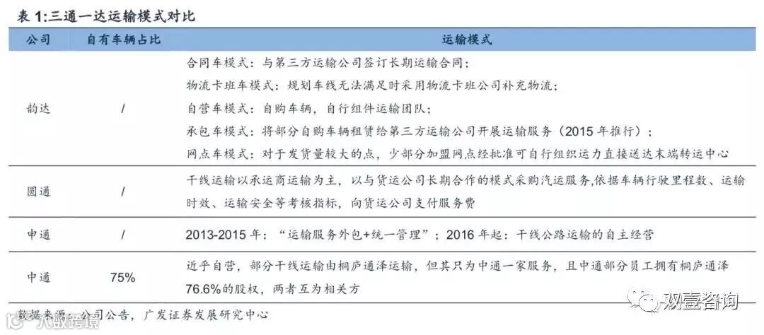 2016年以前,申通的中转汽运全部外包给桐庐安顺,而桐庐安顺的一部分车辆本身就是租赁于申通,二者存在一定的关联交易,这使得双方的合作具有较强的确定性。2016年,申通快递通过全资子公司杭州申瑞收购桐庐安顺车辆资产,并由杭州申瑞负责新购置车辆的购买和管理,实现了快递业务干线公路运输的自主经营,自有车辆占比提升到65%。