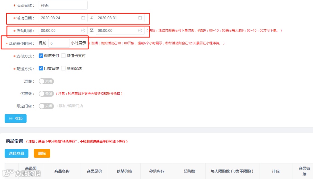 *(举例:可在3.25-3.28每天11:00:00-12:00:00开启秒杀)