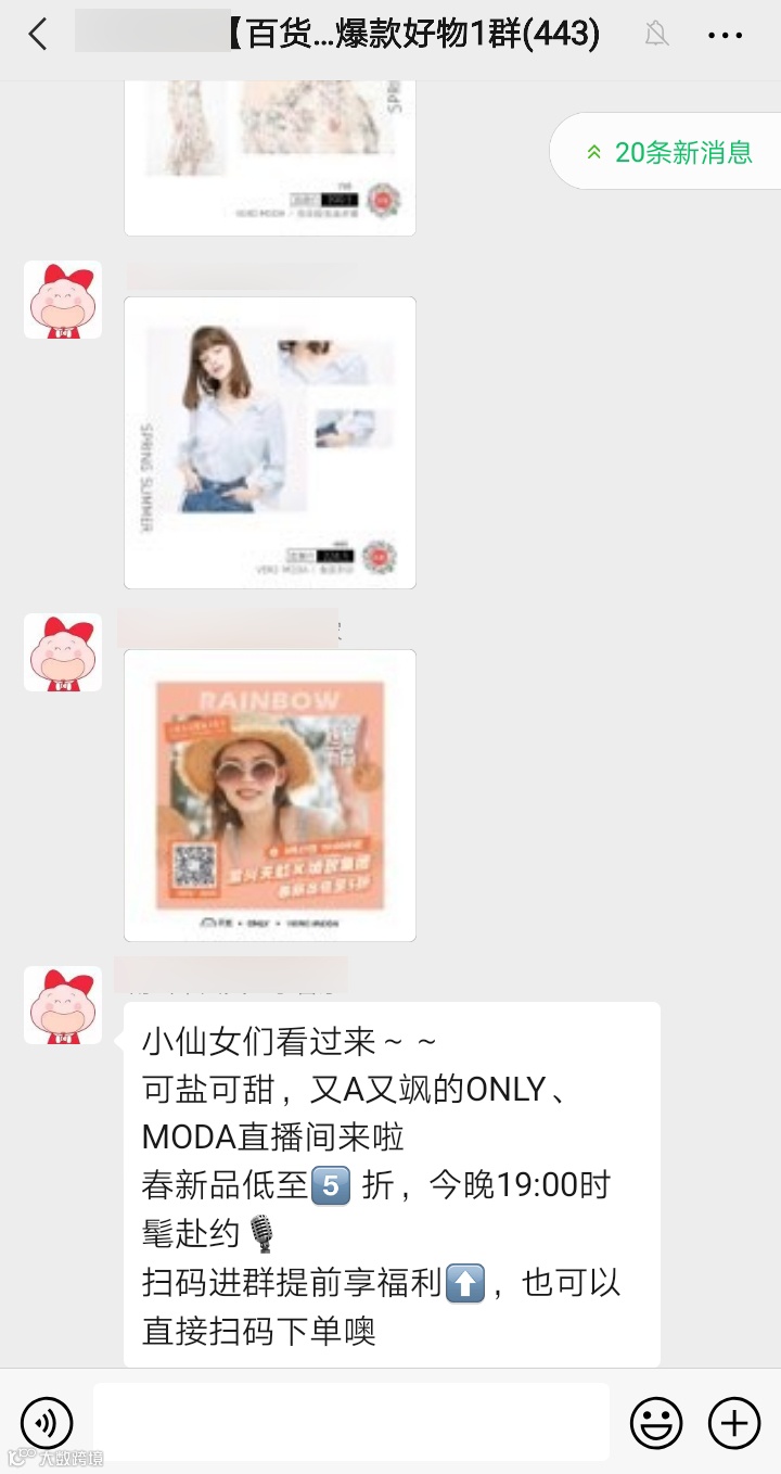 导购在微信群分享直播商品海报、营造抢购氛围,可高效刺激用户下单,未观看直播的用户也可在微信群实时获取直播商品信息,直播+微信群卖货,转化率可提升3—5倍。