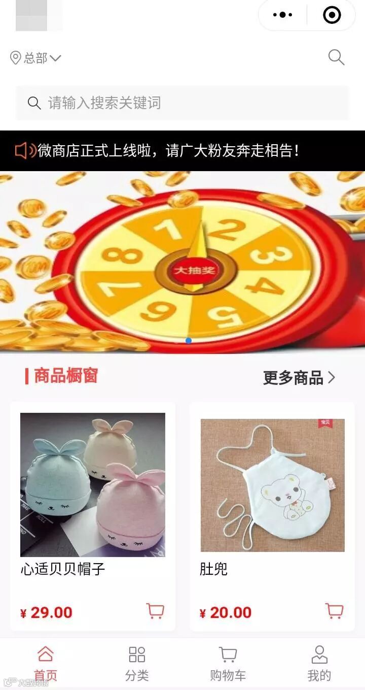 注:主页放部分商品即可,商品太多页面加载慢,且给用户漫无边际的感觉,影响体验,目前微商店3.0的类别管理功能已很完善,可用类别管理引导用户进入二级页面查看详细类别产品。