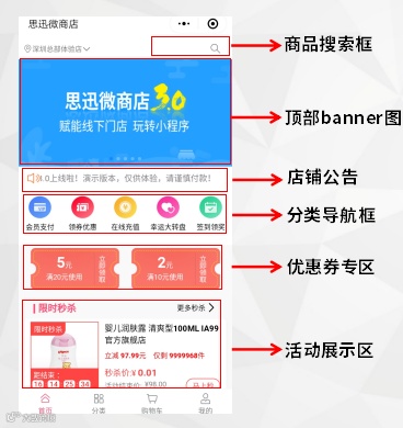 思迅微商店3.0全新升级,完全自定义主页模板设计,可视化页面编辑、拖拽式操作,商家可根据自己店铺的风格去自由编辑微主页、个人中心页面、店铺导航、店铺主题颜色、分类页显示等,5分钟快速搭建个性化线上商店。