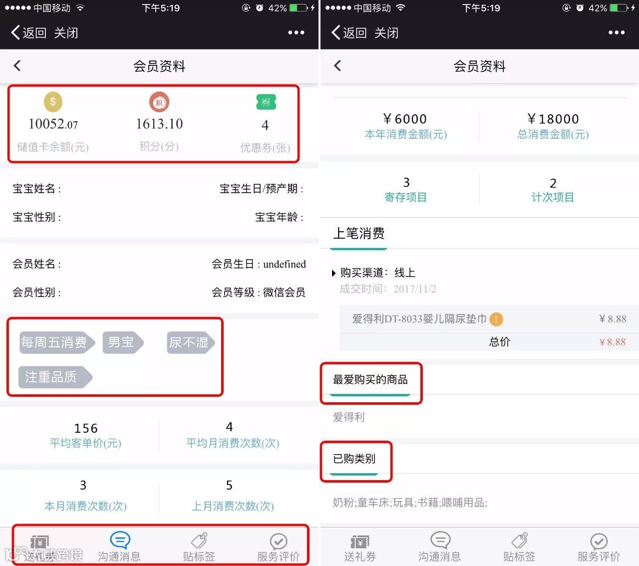 会员单客营销,顾名思义,便是精准分析某一个或某一类会员的消费情况,并提供会员画像、贴标签及送礼券等营销支持。