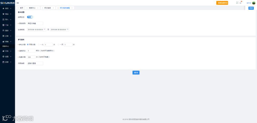 思迅微商店3.0调整抽奖活动的创建和规则,使抽奖活动可按商家意愿设置多种形式,如长期抽奖、每日抽奖、节假日抽奖、店庆抽奖、积分抽奖、消费抽奖等。