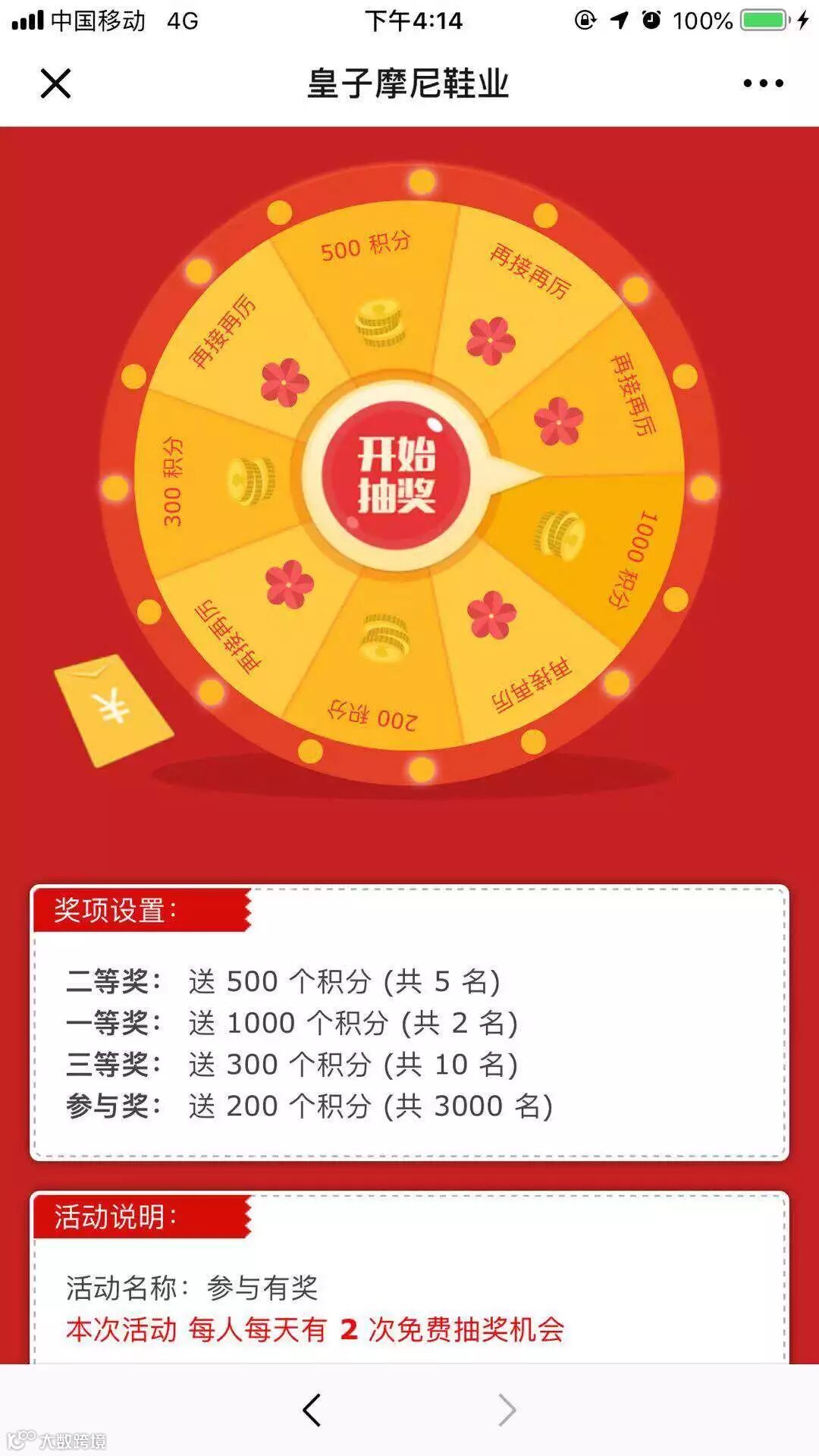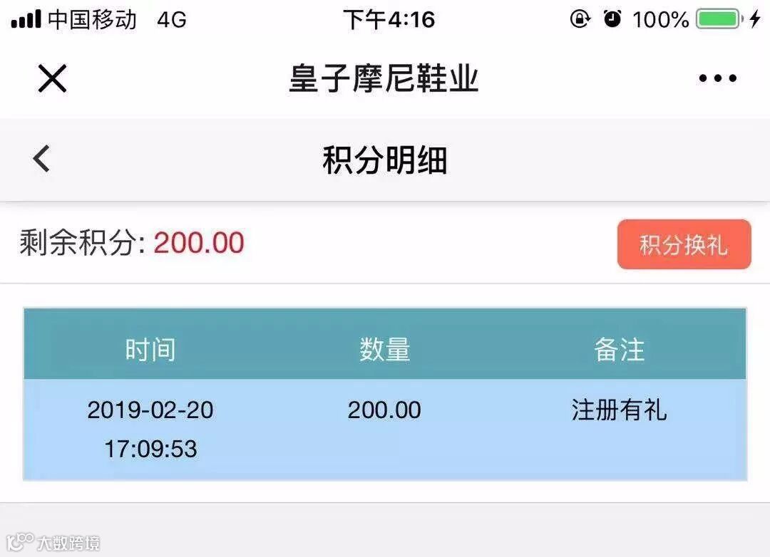 “皇子摩尼鞋城”会员注册/签到有礼: