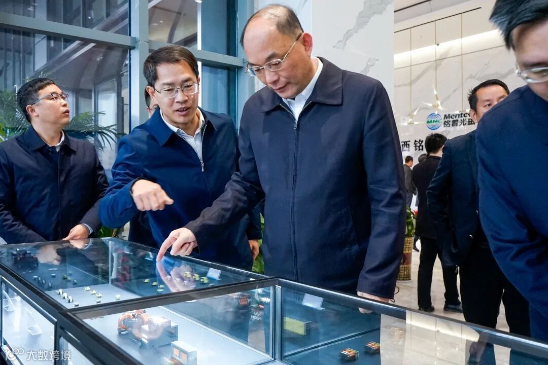 投产仪式结束后,抚州市人大常委副主任、广昌县委书记许爱军等领导和嘉宾参观了江西铭普展厅、生产车间,了解铭普发展历程、企业文化、生产制造设备等。
