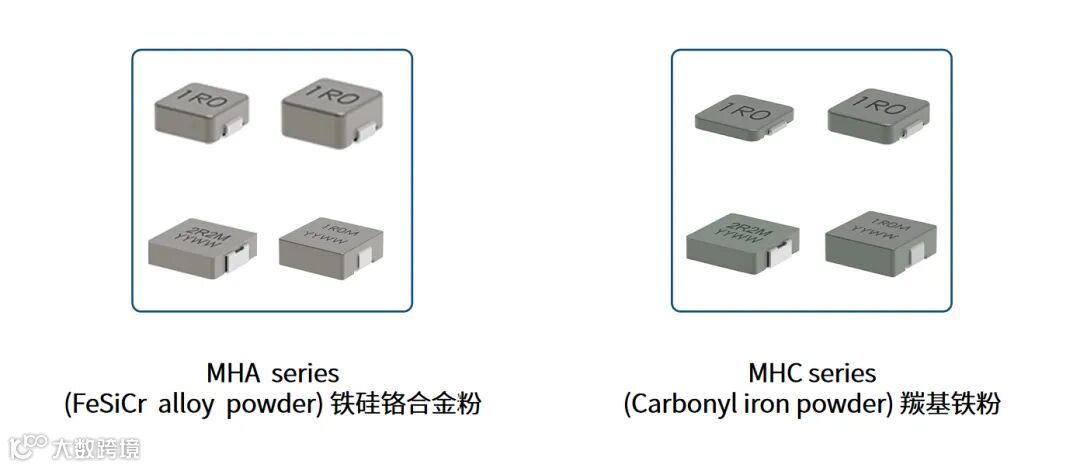 在使用的磁性材料上,可分为MHA(铁硅铬合金粉)系列和MHC(羰基铁粉)系列,其中,两者都有尺寸小、能处理不饱和的瞬态电流峰值、磁屏蔽结构、复合结构、超低噪音的特点,不同之处在于,MHA系列的DCR低,lrms高,而MHC系列具有高电流能力。