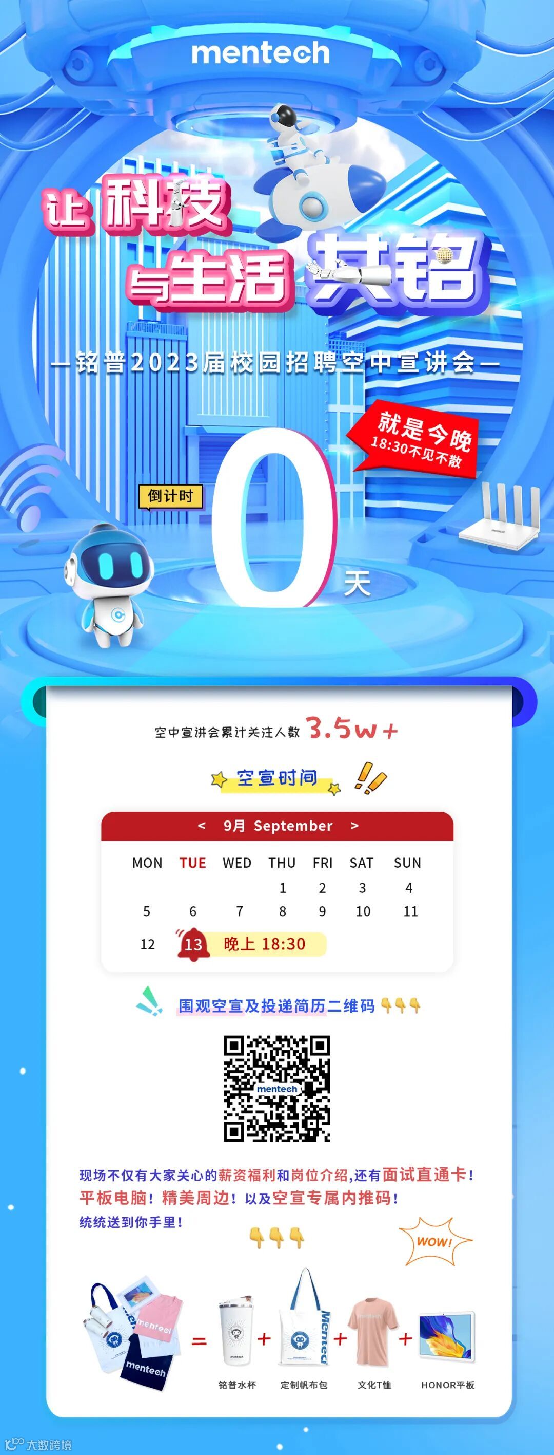 今晚18时30分!铭普2023届全国校园招聘空中宣讲会闪耀来袭!