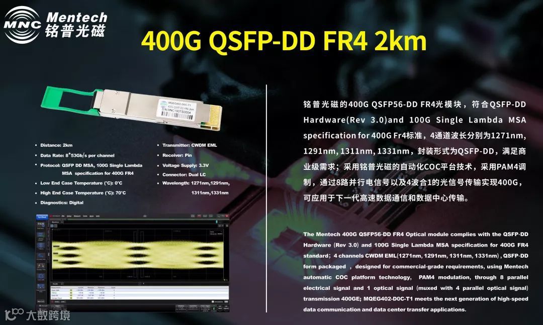 作为代表业界未来主流方向和呼声最高的400G解决方案,400G QSFP-DD FR4凝聚了我司武汉研究所最尖端的实力。