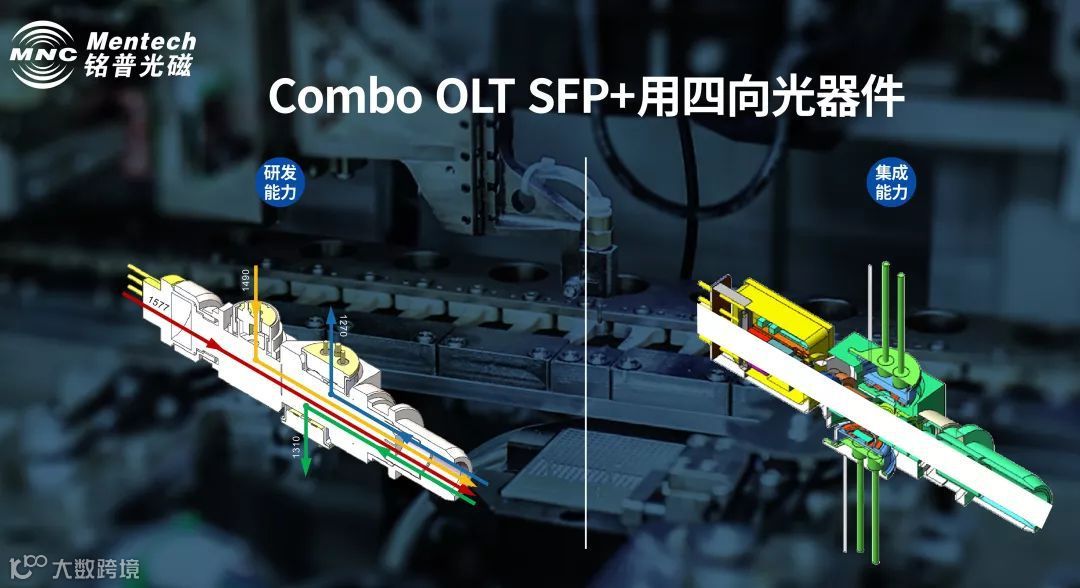 而这款C+(D2)级别的高功率Combo OLT SFP+模块的核心技术,则在于其内部独有的高功率四向器件,如下图: