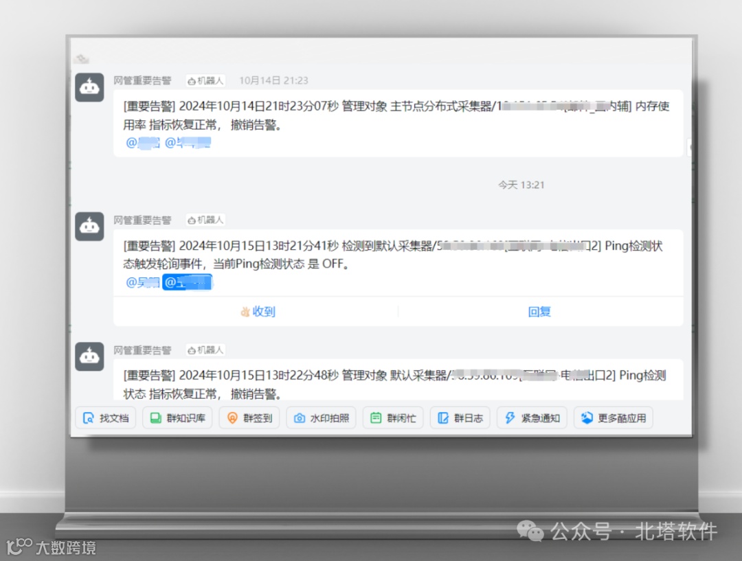 北塔智能运维管理平台作为日常运维管理的核心枢纽,确保了预警信息及报表数据的即时传达至指定责任人。