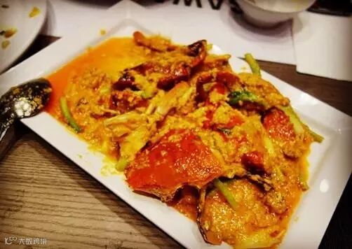 鲜香的螃蟹过油炸到酥脆,再由泰国本土的咖喱、椰奶、香茅、辣椒等调整成酱汁一起翻炒,直到酱汁浓稠的覆盖在整个螃蟹上。整道菜金灿灿一盘,加上独有的泰式香料,色香味俱全,绝对让你食欲大增。