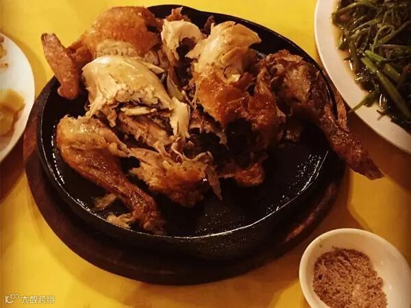 诞生于芭堤雅的颂赛餐厅(Somsakdi’s Restaurant),一间近三十年历史的老店。整只鸡经过老板的秘制调料腌制后挂炉烧烤,放入石板上桌,远远地就可以闻到香气扑鼻。不过重点来了,老板会在鸡肉上洒上食用酒精并迅速点燃。大约1分钟后,火自然熄灭,鸡皮滋滋作响。整道菜真真的外酥里内,配上老板特调的椒盐粉,幸福感满分!