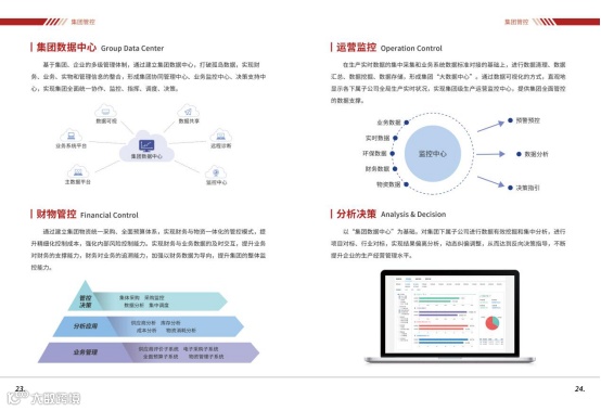 企业智能管控一体化平台由一系列自主知识产权的软件产品组成。以经营管控、生产运行、监控中心、集团管控、智慧服务、辅助应用等业务系统为核心,覆盖设备、耗材、仓库、文档资料、财务预算、人事行政等所有企业管理要素的集中管控平台。实现对生产、经营、财务、环保、安全等过程管控,加强企业运行监管能力,提高预测分析能力,强化作业指导能力。