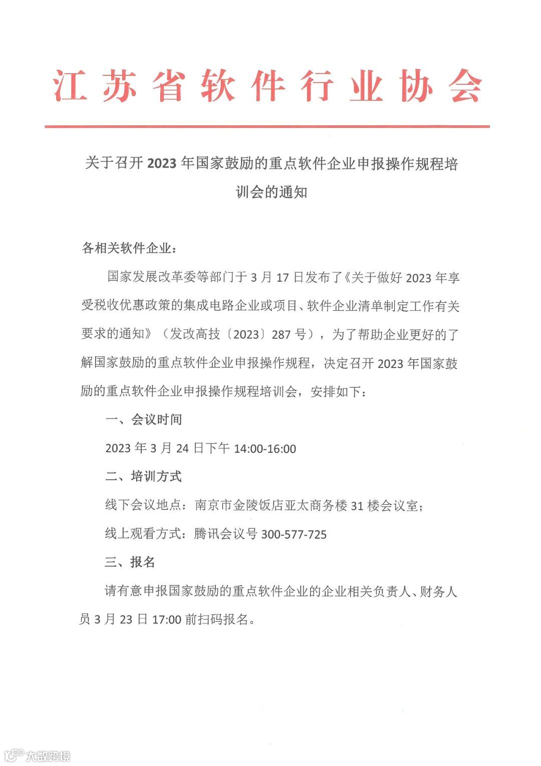导读:【培训通知】关于召开2023年国家鼓励的重点软件企业申报操作规程培训会的通知
