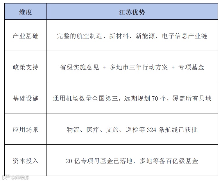 江苏低空经济的发展不仅体现在政策布局和应用场景上,更有一系列扎实的数据支撑其“全国领先”的雄心。