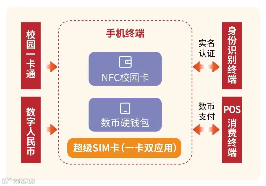 中国银行、中国电信、中国联通组成中电联联合项目组参与数字人民币研发试点工作,三方于2023年7月11日在数字人民币APP上线SIM卡硬钱包产品,把数字人民币软钱包关联至SIM卡,使得SIM卡具备数字人民币支付功能。为了补充完善SIM卡硬钱包在校园场景的应用,中国银行联合新中新集团对校园一卡通系统进行功能升级,实现了SIM卡硬钱包与校园一卡通的深度融合。