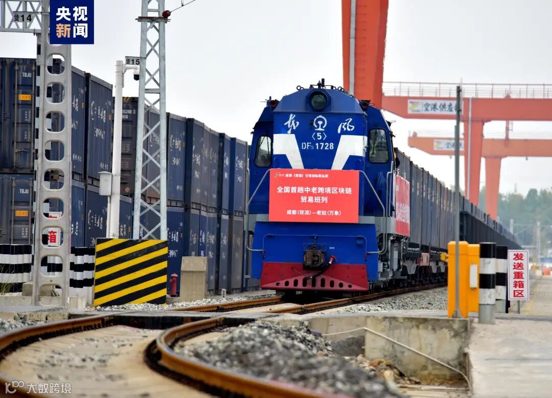 央视网消息:12月3日,一列满载电动自行车、石材、瓷砖、灯具等出口商品的国际货运列车从成都(双流)空铁国际联运港出发,发往老挝首都万象。值得关注的是,本趟班列有一个最大的特点——首次将区块链技术应用到国际联运链条当中。