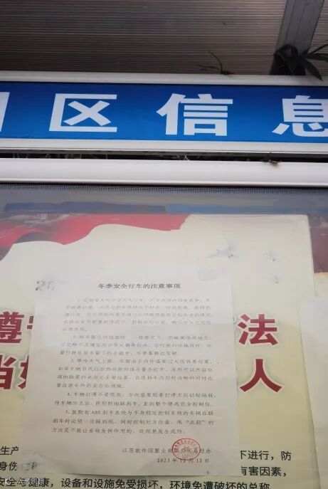 为此,置业公司通过在商务公园公告栏中张贴注意事项等多种形式向园区企业宣传冬季行车安全。