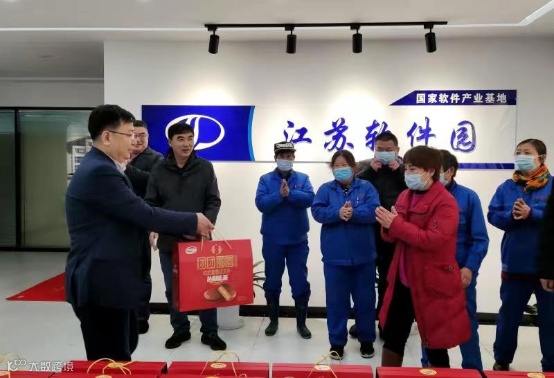 1月27日下午,在壬寅年春节来临之际,公司党委副书记、总经理陈晓东亲切慰问了江苏软件园徐庄基地国园物业基层工作人员,为他们送去慰问品,并向他们致以诚挚的问候和新春祝福,由衷感谢他们在各自岗位上为江苏软件园徐庄基地发展作出的贡献和努力。公司党委委员柳砚风带队,看望生病员工,把温暖送到了伤者的心头,让广大员工切实感受到了公司无微不至的人文关怀。
