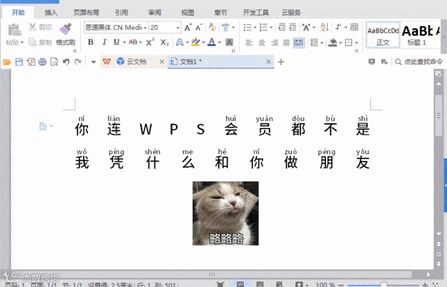 选中需要增加拼音的文字,点击开始菜单中的「拼音指南」,设置拼音的大小和排列方式。