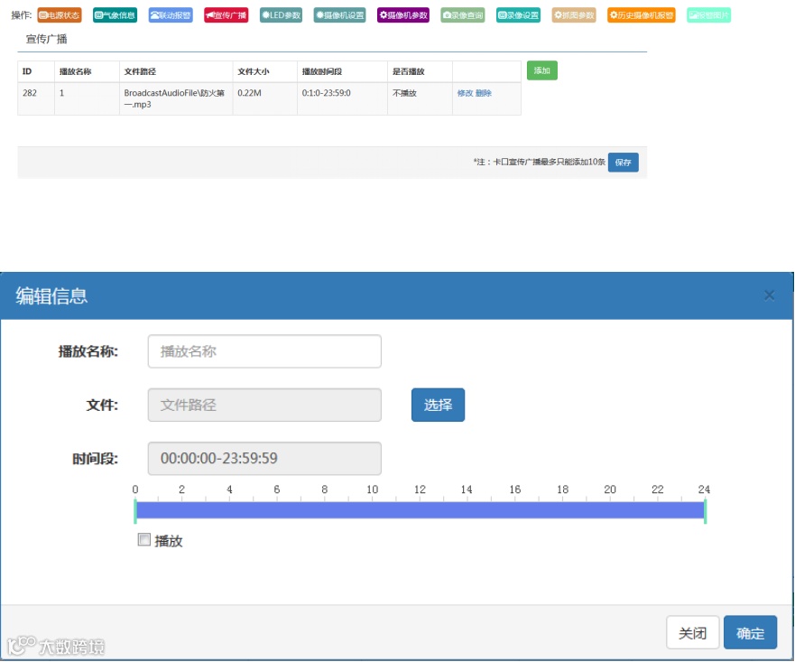 将宣传广播音频文件添加到系统中,既可按照所设置的时间段播放宣传广播文件。